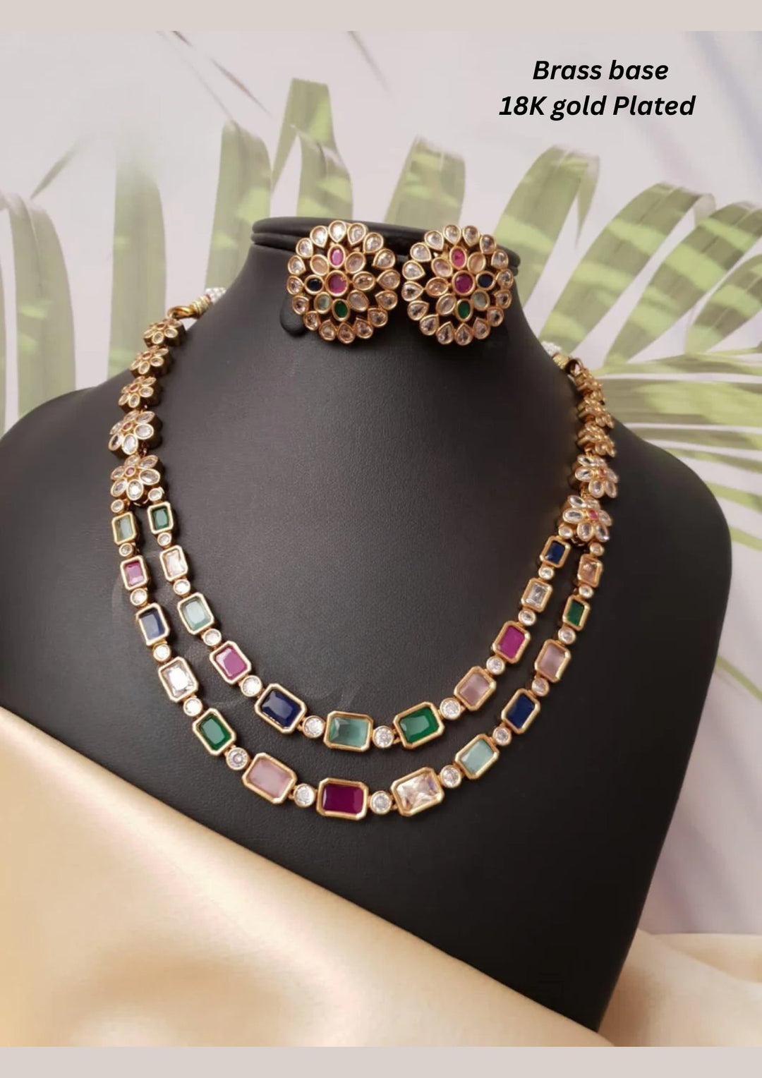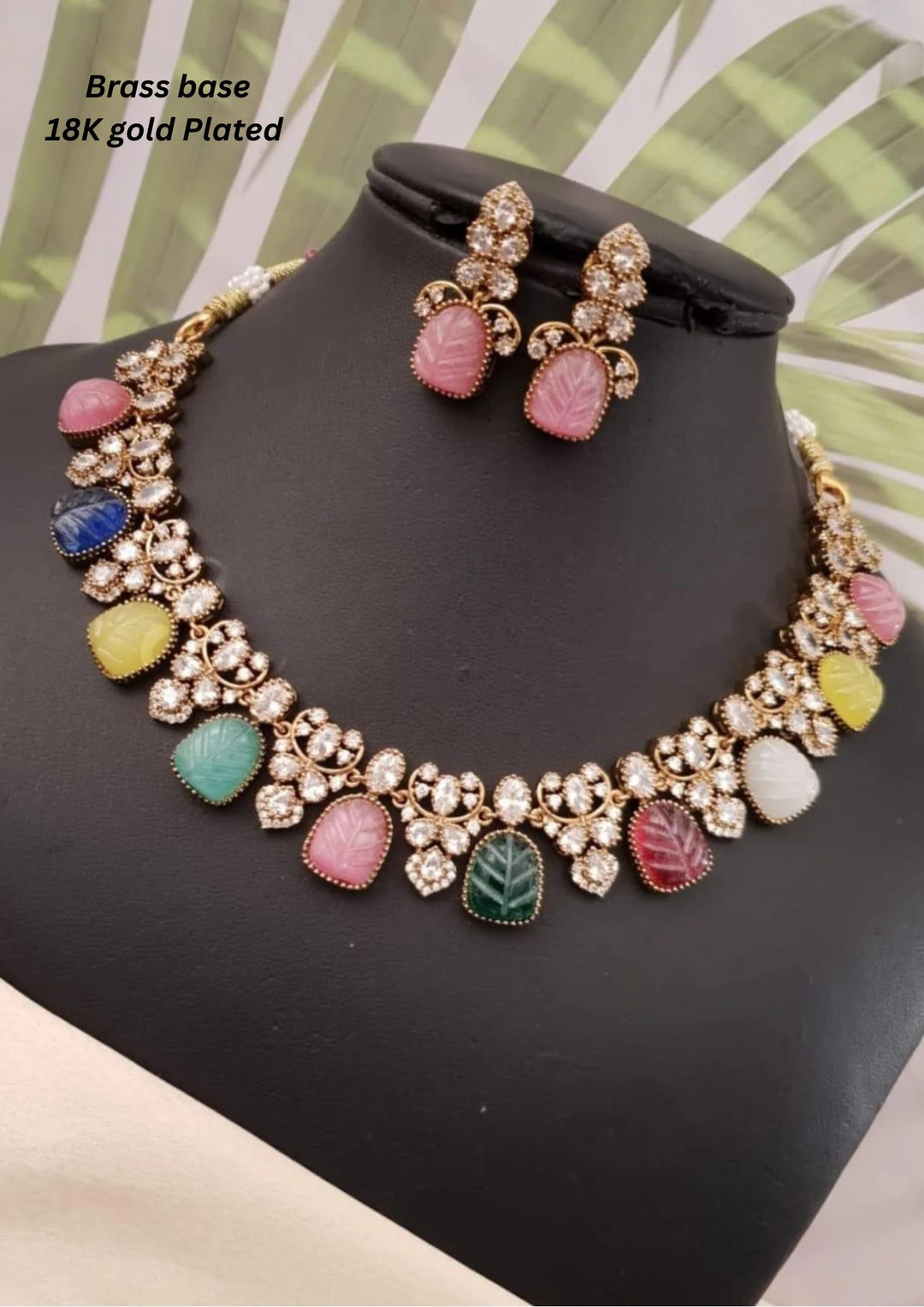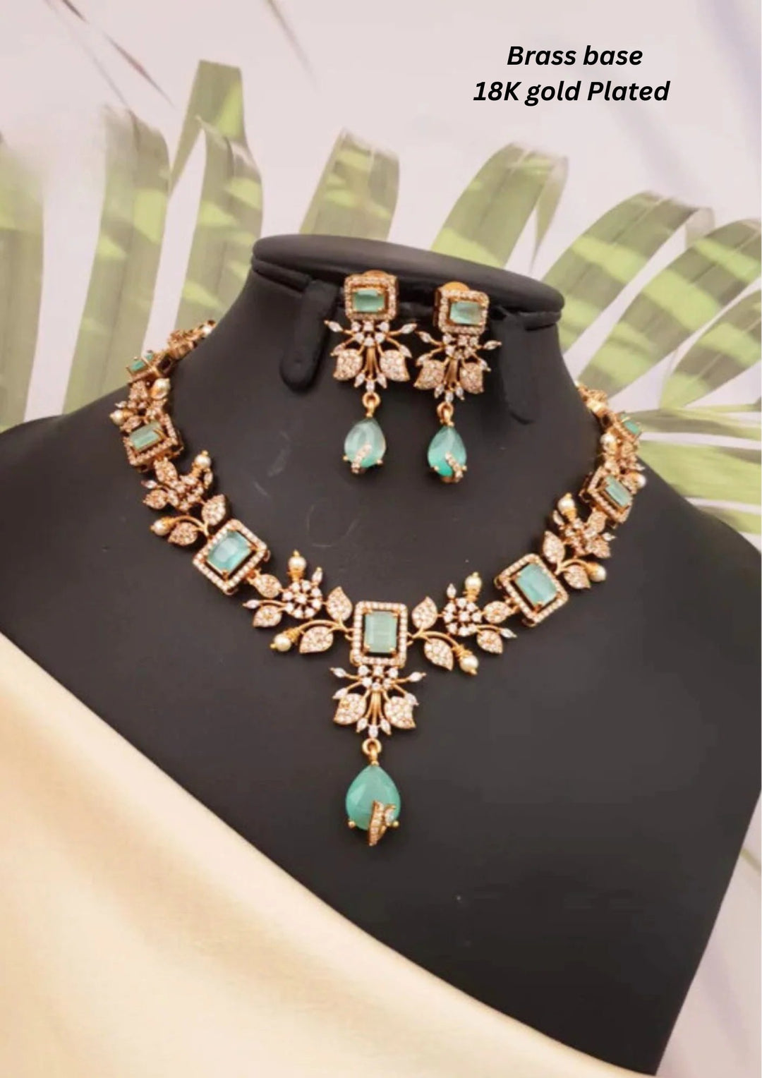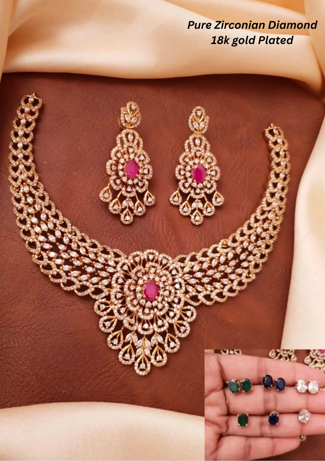 Pure Zirconian Gold Plated Diamond Interchangeable Stone Necklace With Earrin...