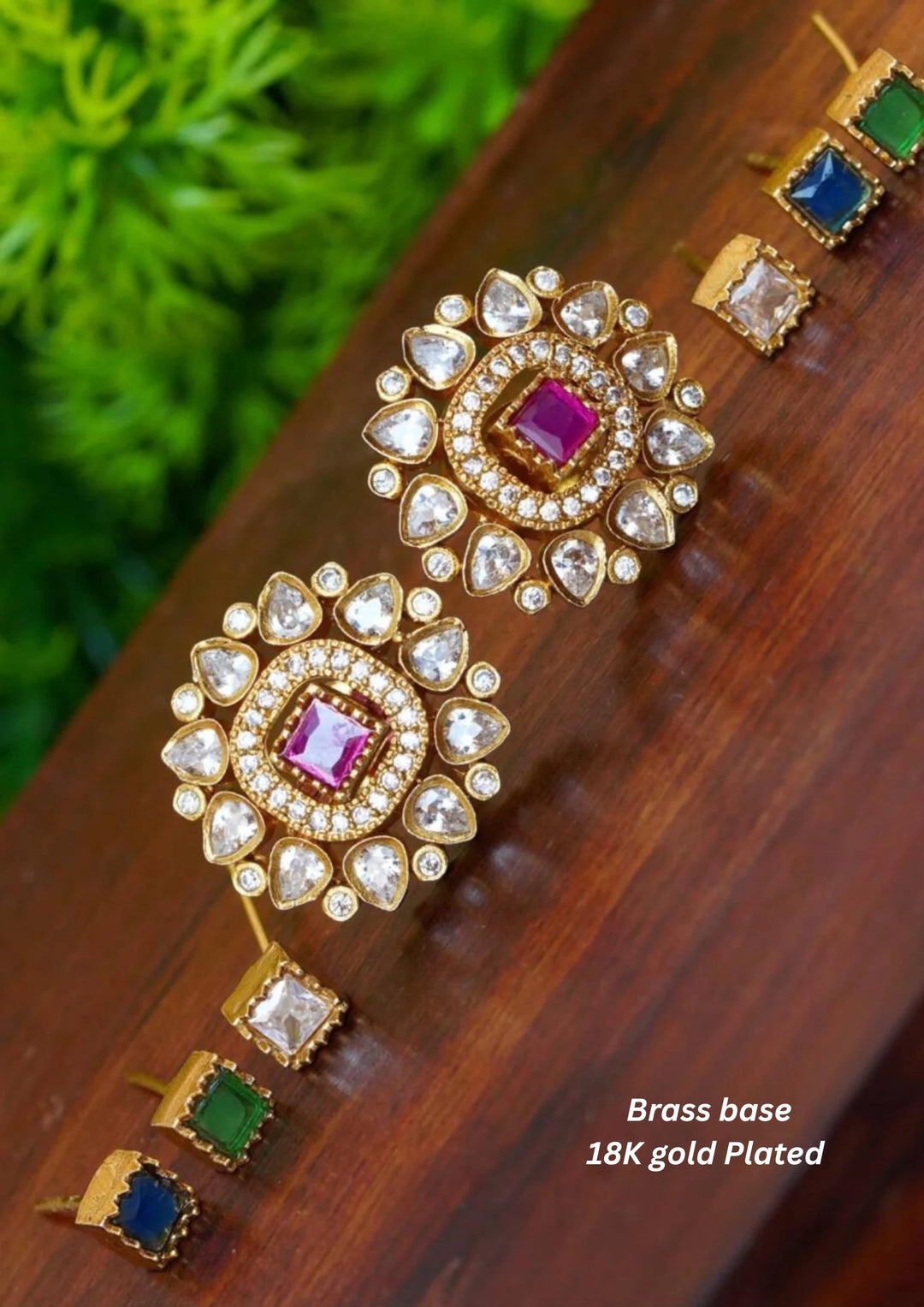 Kundan & Beads Brass Base Gold Plated Interchangable Studs e 100