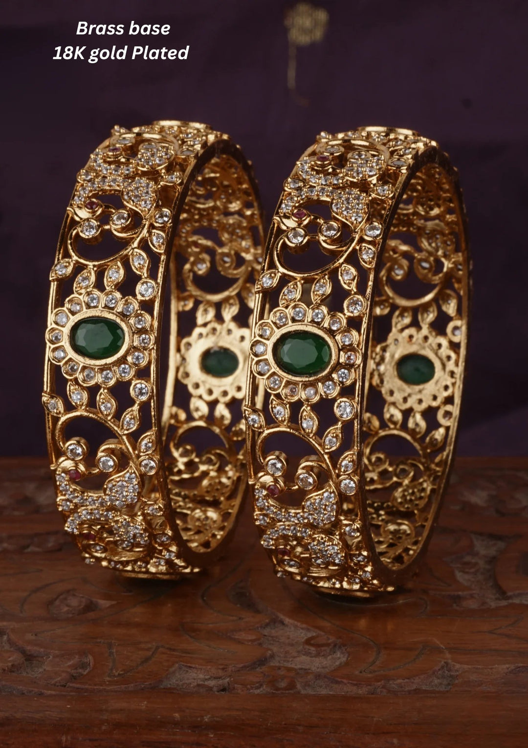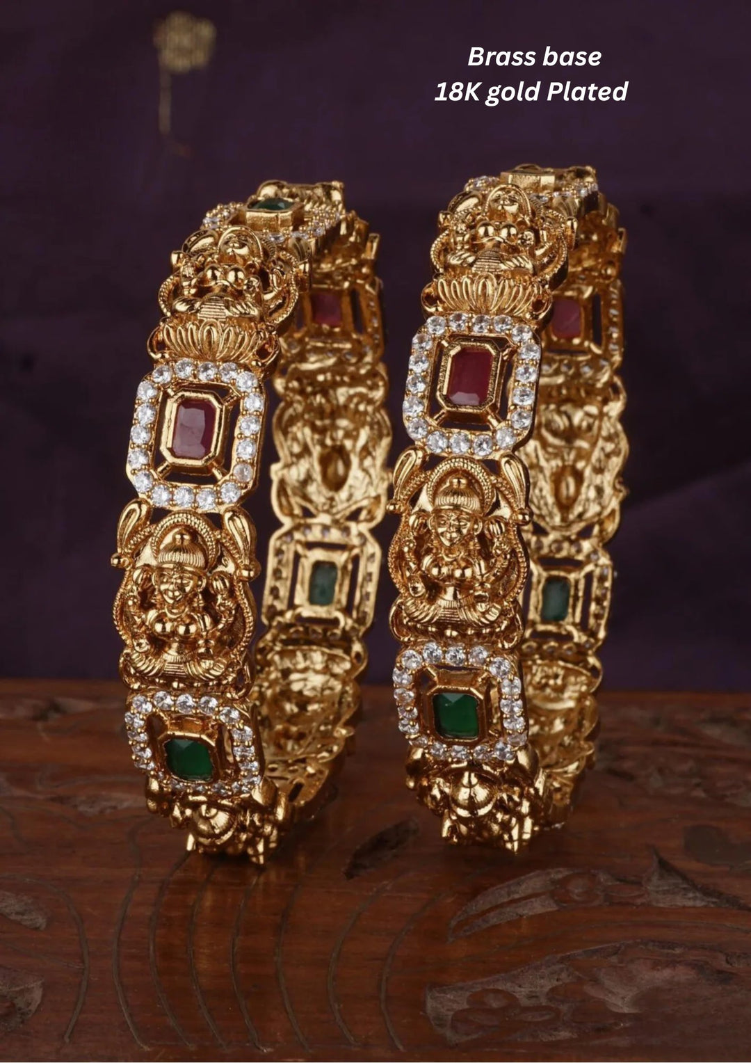 Kundan Stone Temple Brass Base Gold Plated Matt Finish Bangles c 107020 A (S...