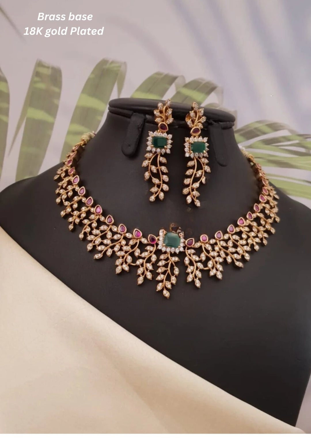 Pure Zirconian Gold PlatedDiamond Stone Necklace With Earrings g 101150