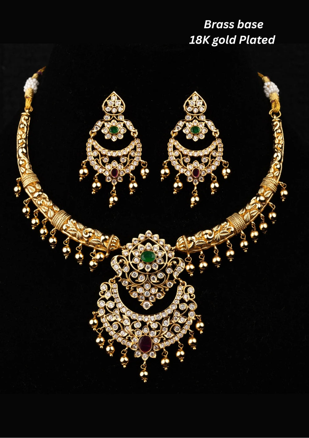 Kundan Stone Brass Base Gold Plated necklace with earrings g 101680