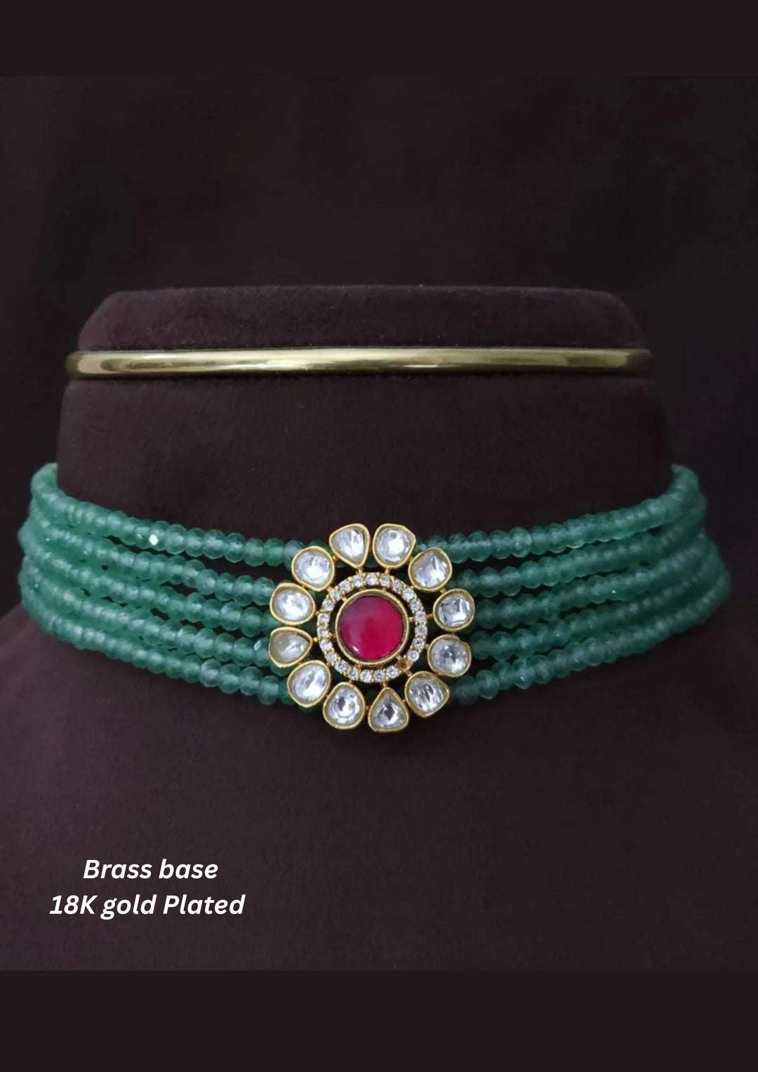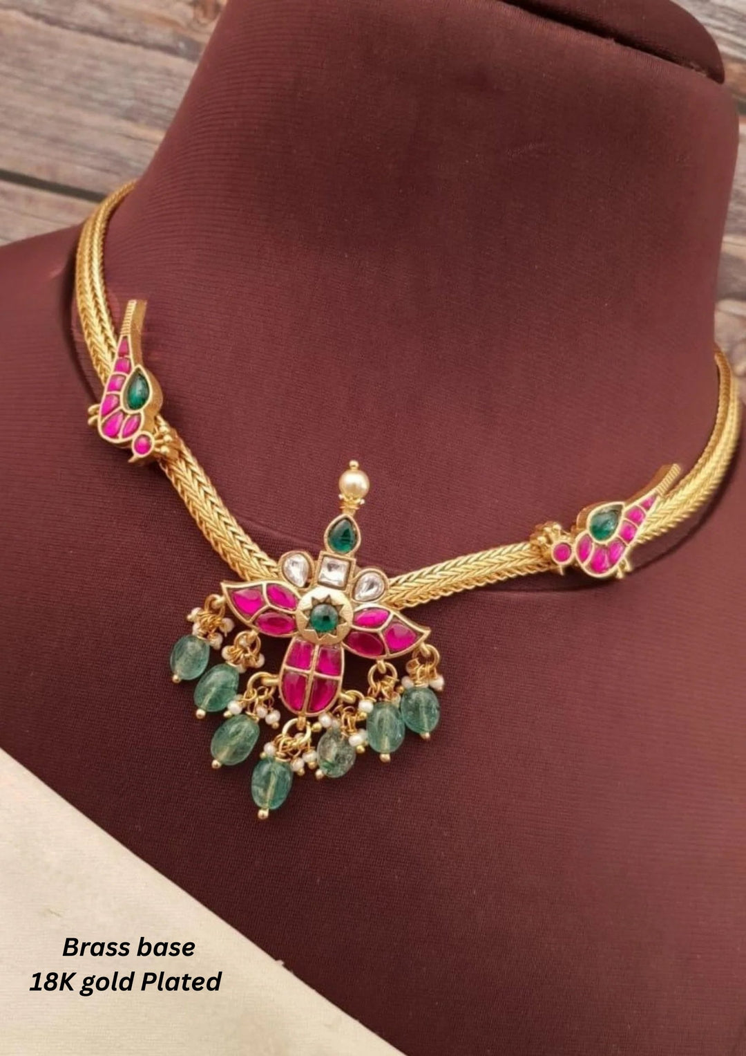 Jadau Kundan & Beads Brass Base Gold Plated Necklace an 115