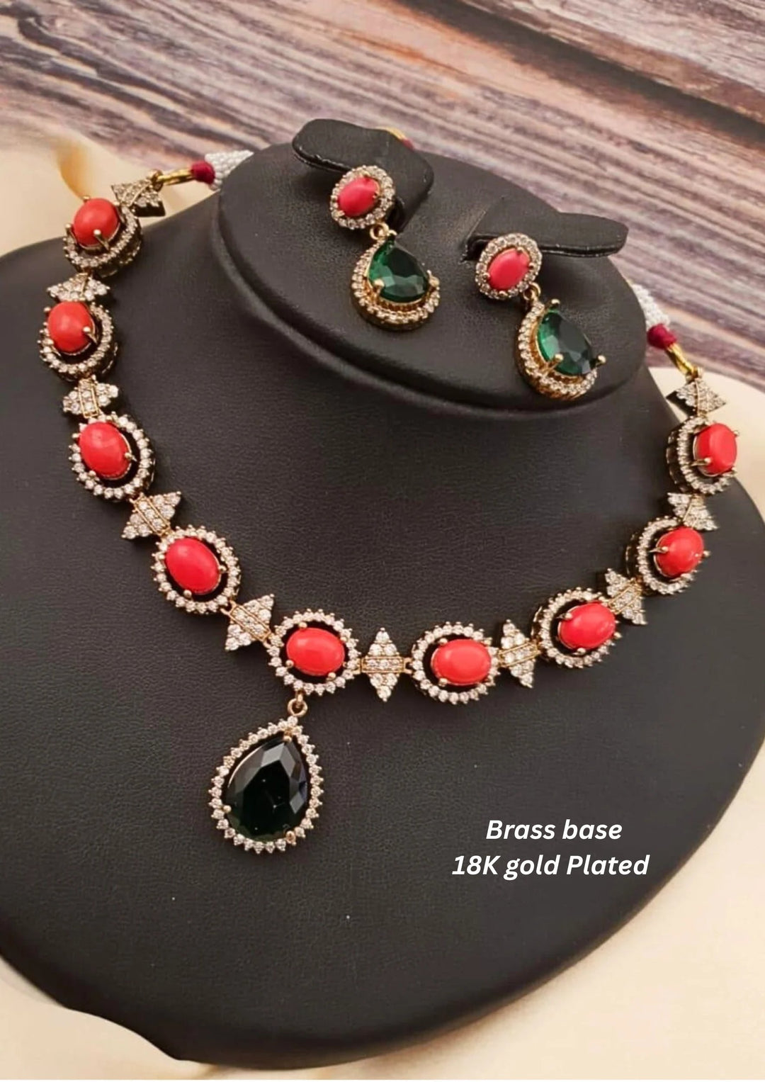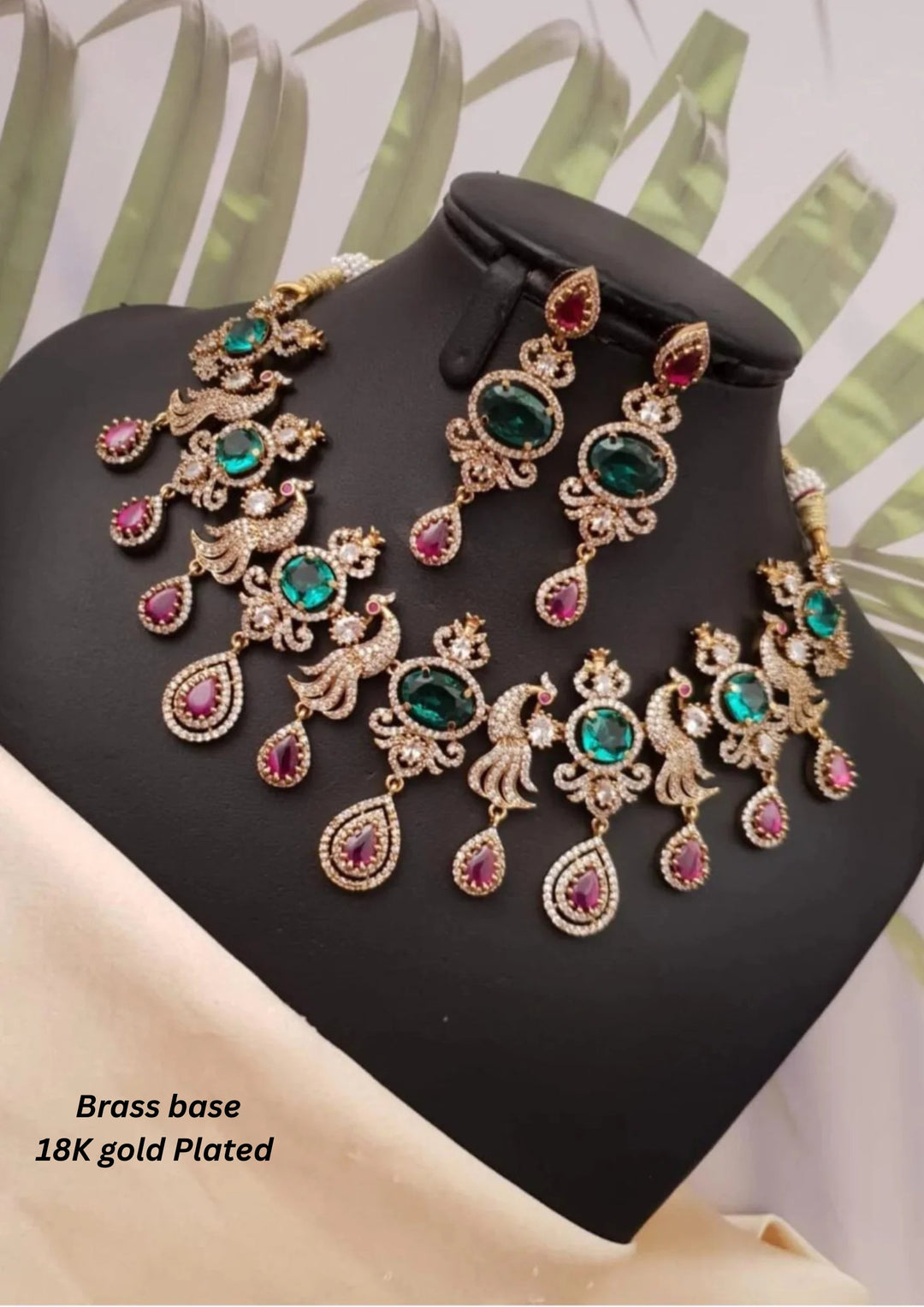 Victorian Brass Base Gold Plated Temple Necklace With Earrings c 1012020