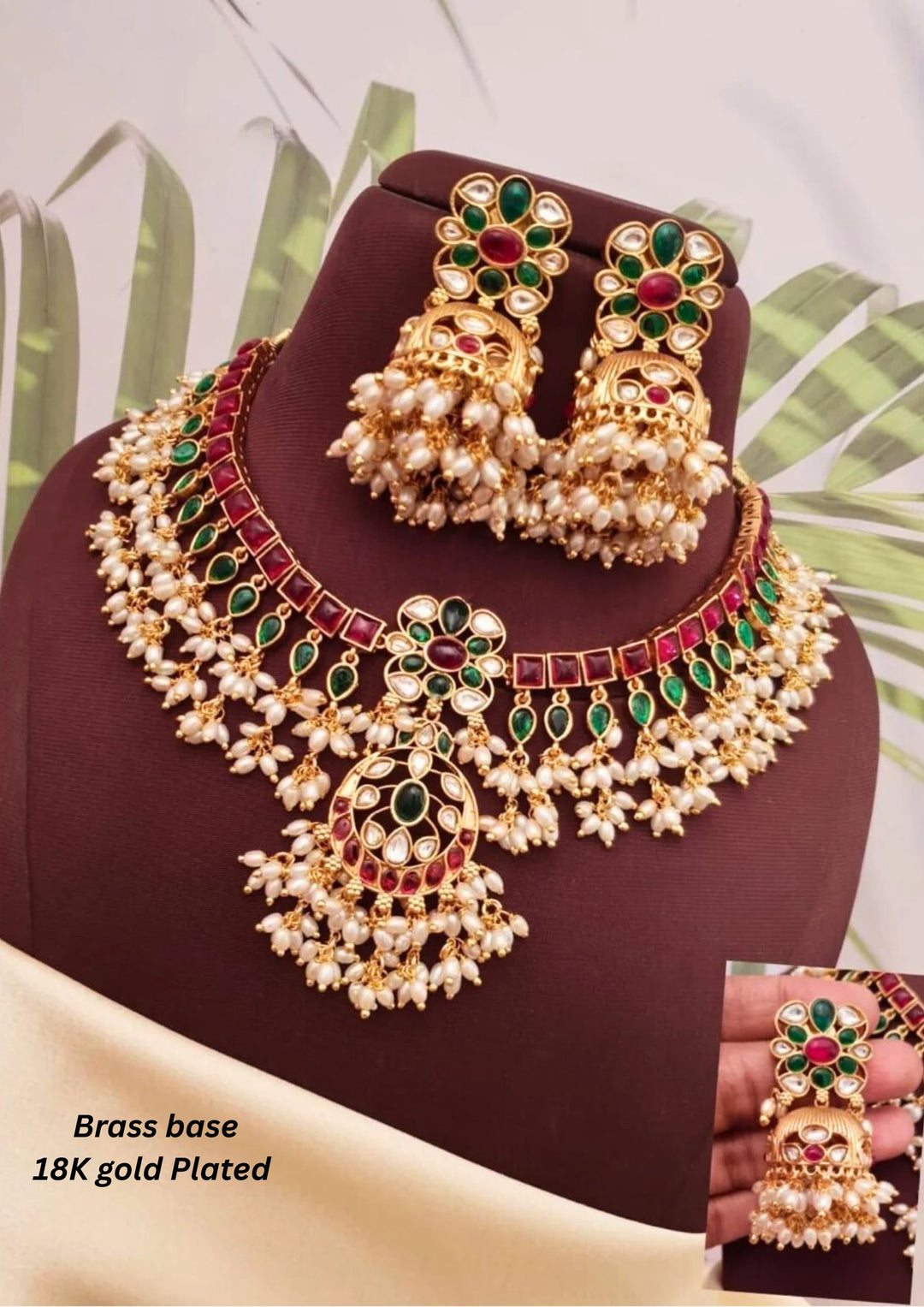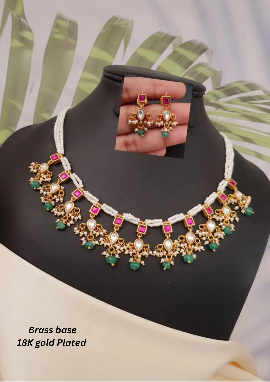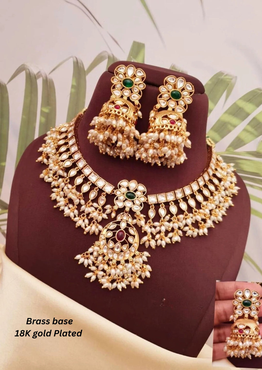Kundan Brass Base Gold Plated Necklace With Earrings g 10750