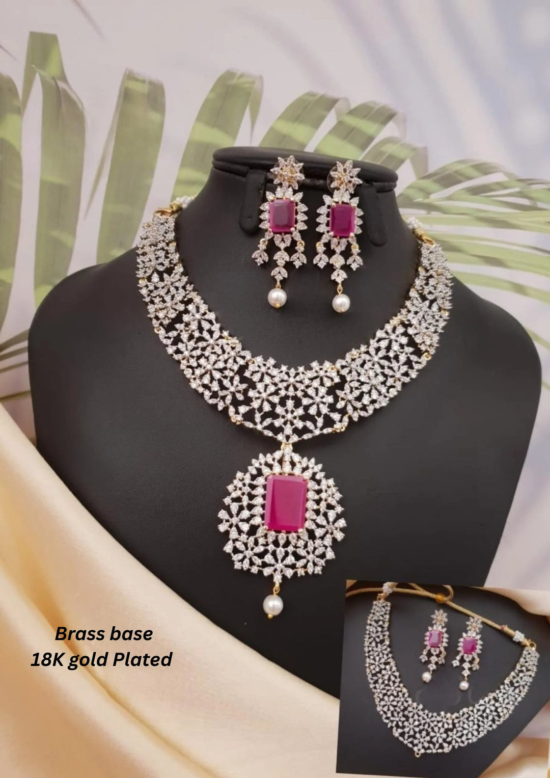 Pure Zirconian Diamond Gold Plated Necklace With Earrings g 101120