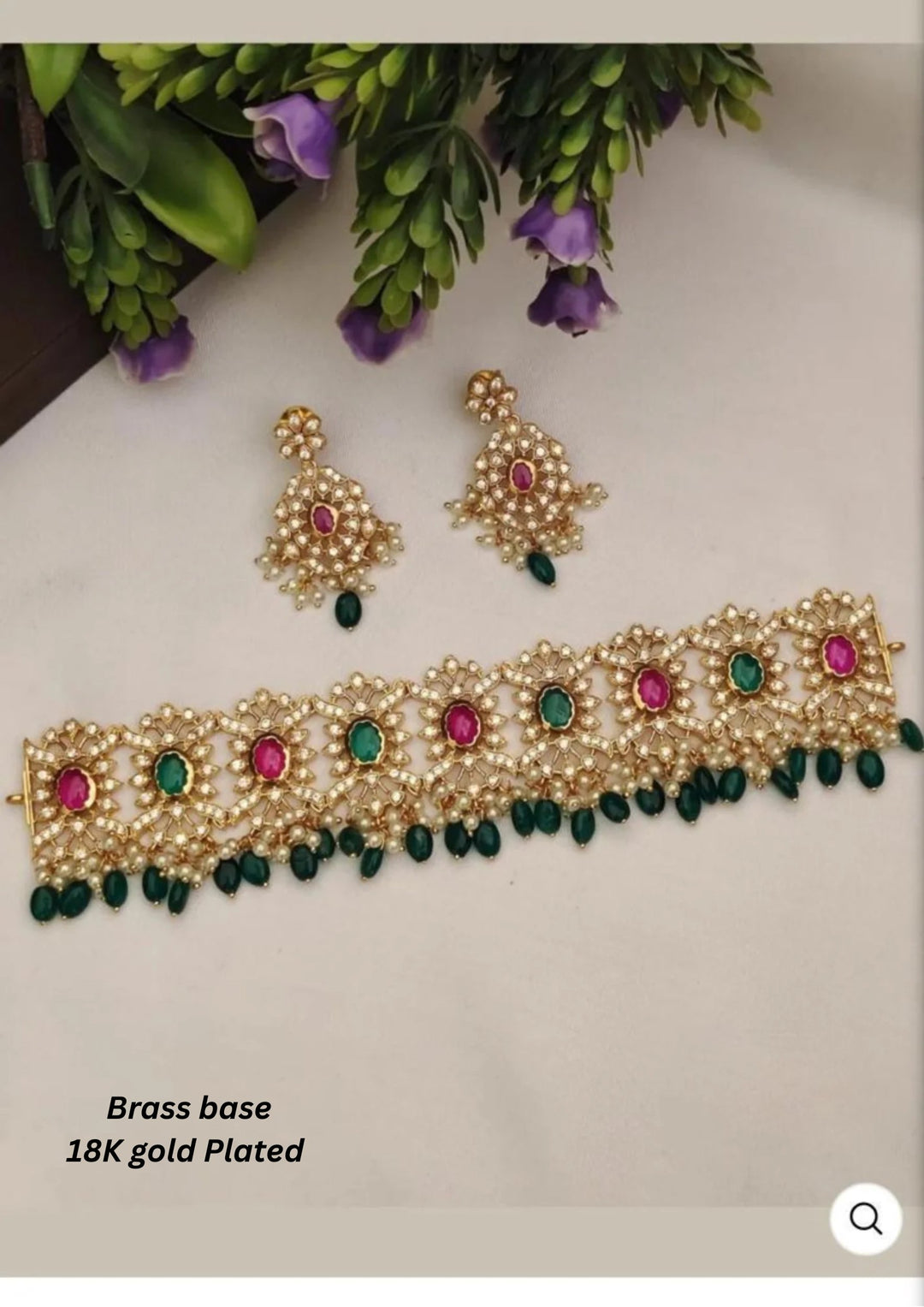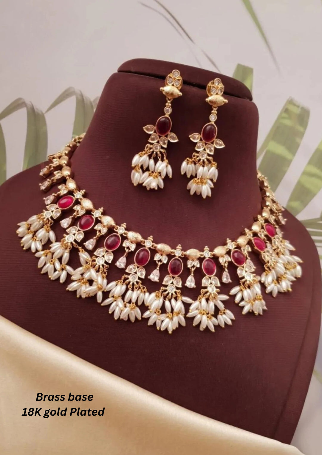 Kundan Brass Base Gold Plated Necklace With Earrings g 102020