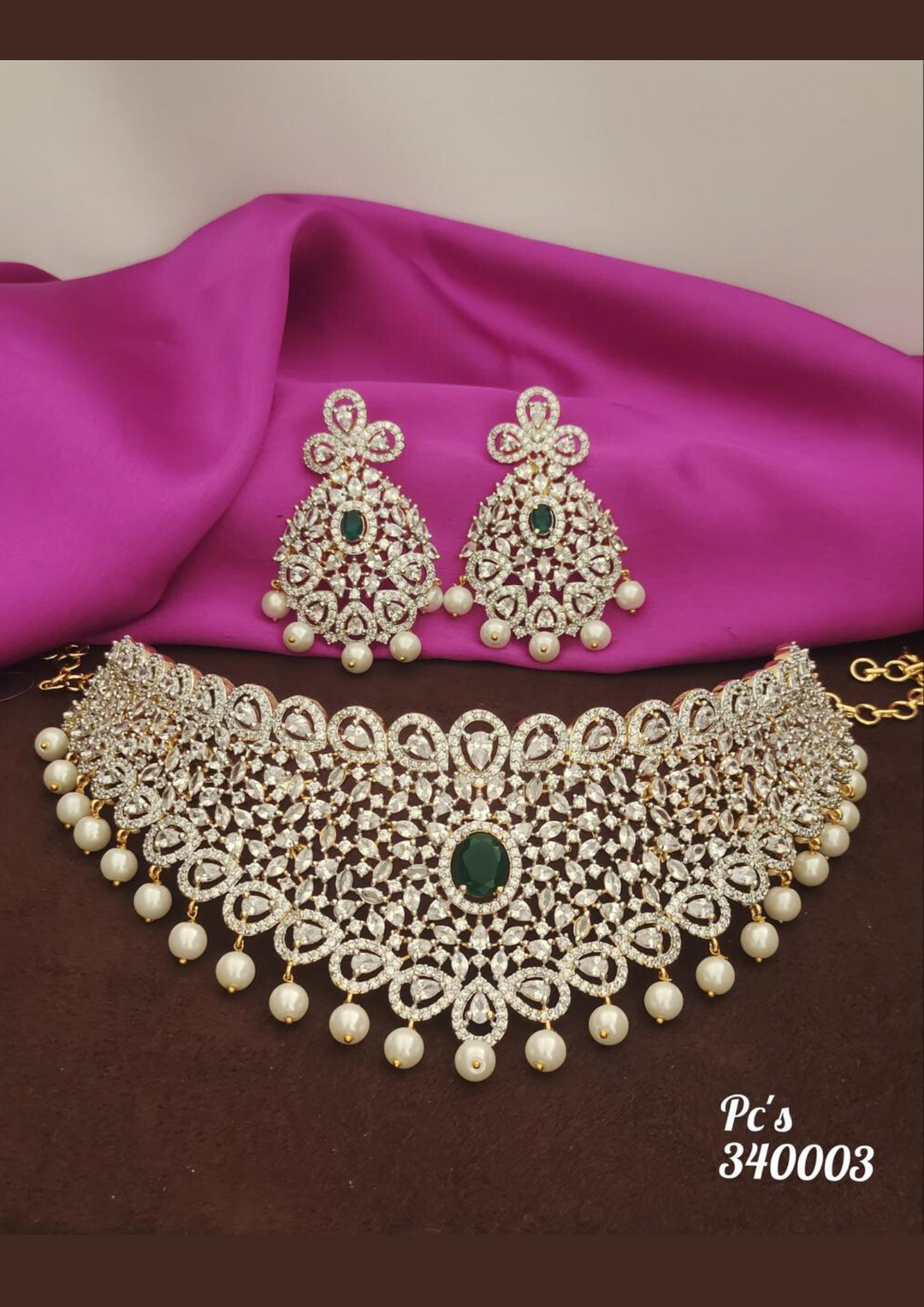 American diamond necklace with earrings s340003