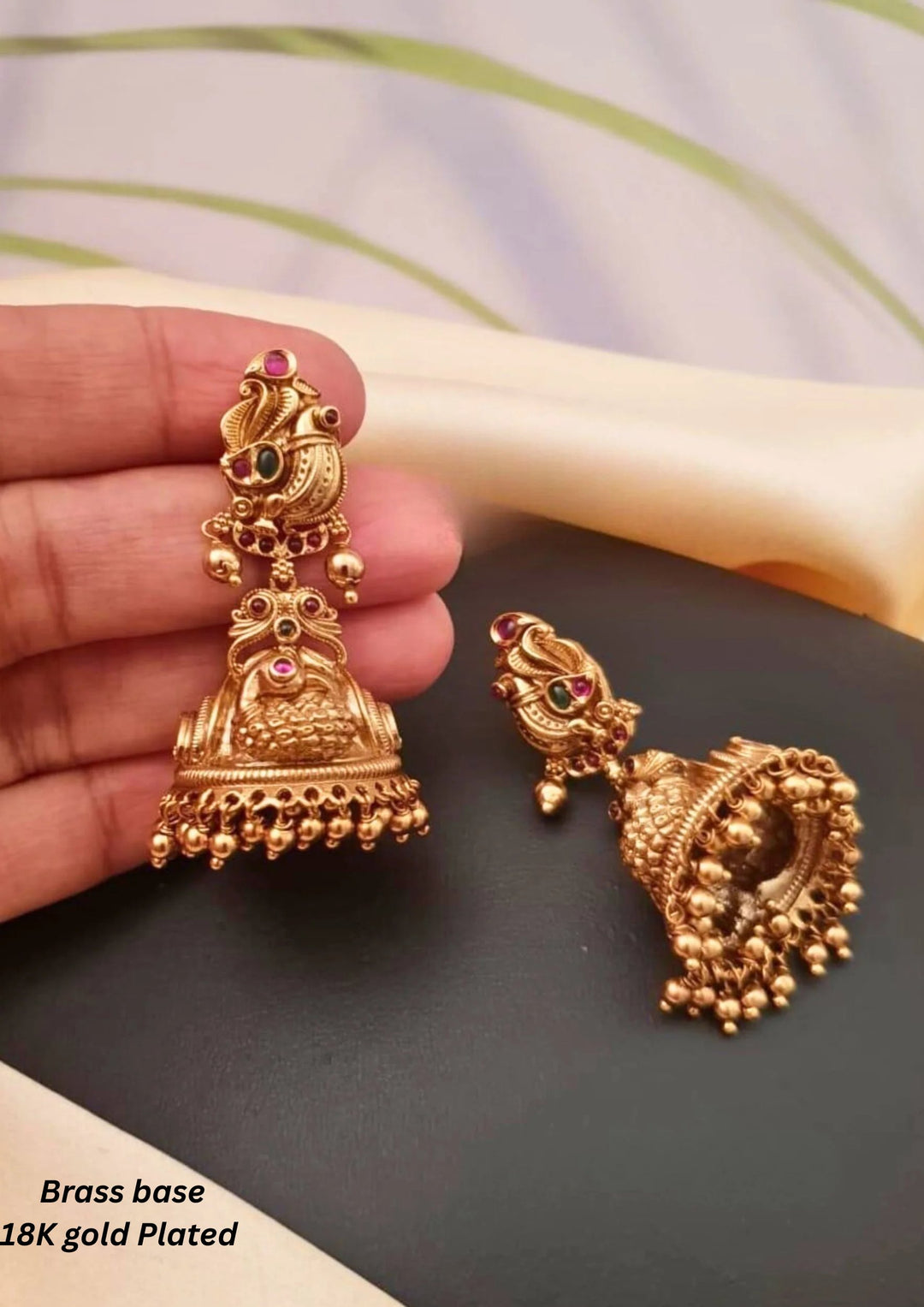 Kundan Brass Base Gold Plated Temple Jhumka g 10750