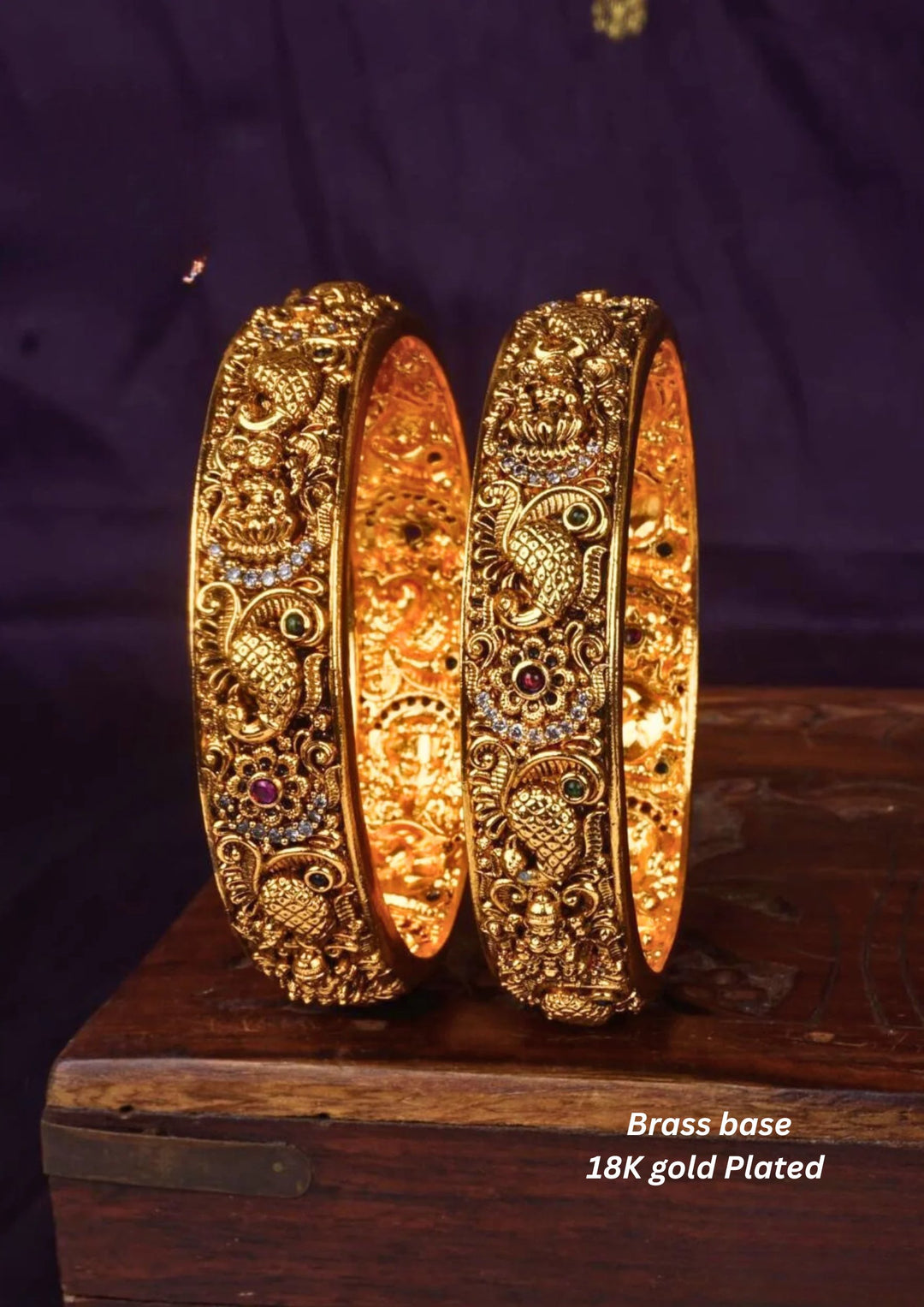 Kundan Brass Base Gold Plated Temple Bangles c 106520 (Set of 2)