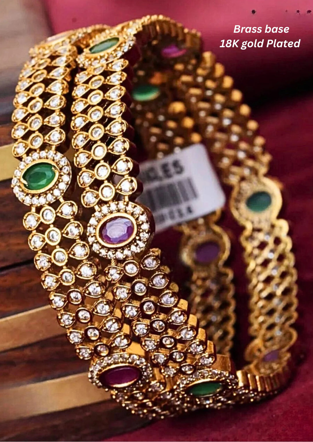 Kundan Brass Base Gold Plated Bangles e 155 (Set of 2)