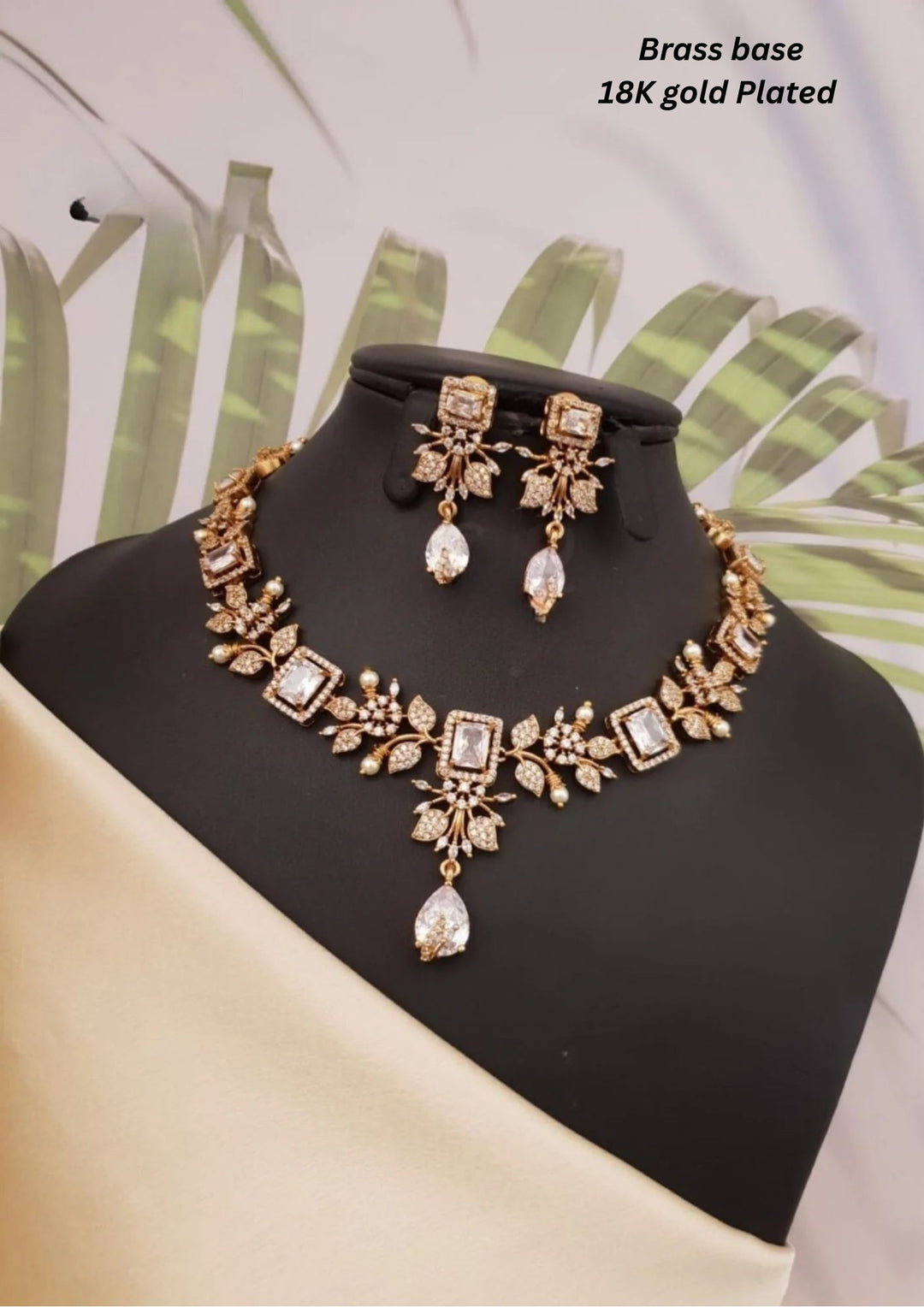 Pure Zirconian Gold PlatedDiamond Stone Necklace With Earrings g 101150