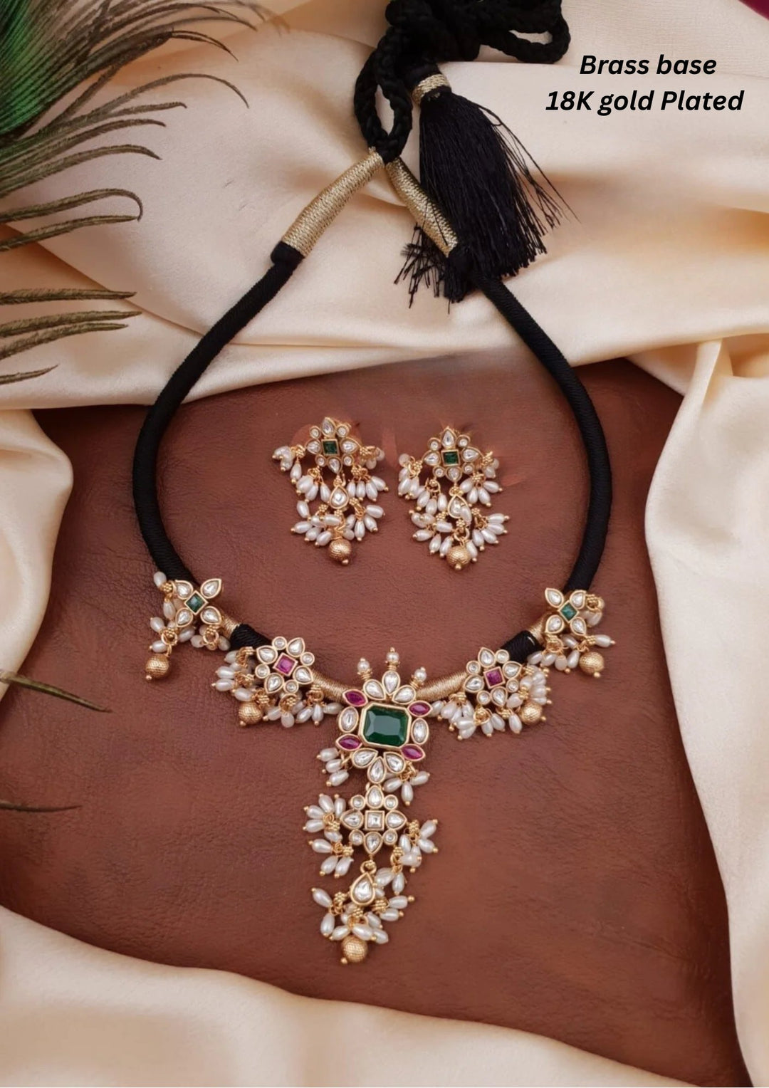 Kundan and beads matt finish Brass Base Gold Plated necklace set with earring...