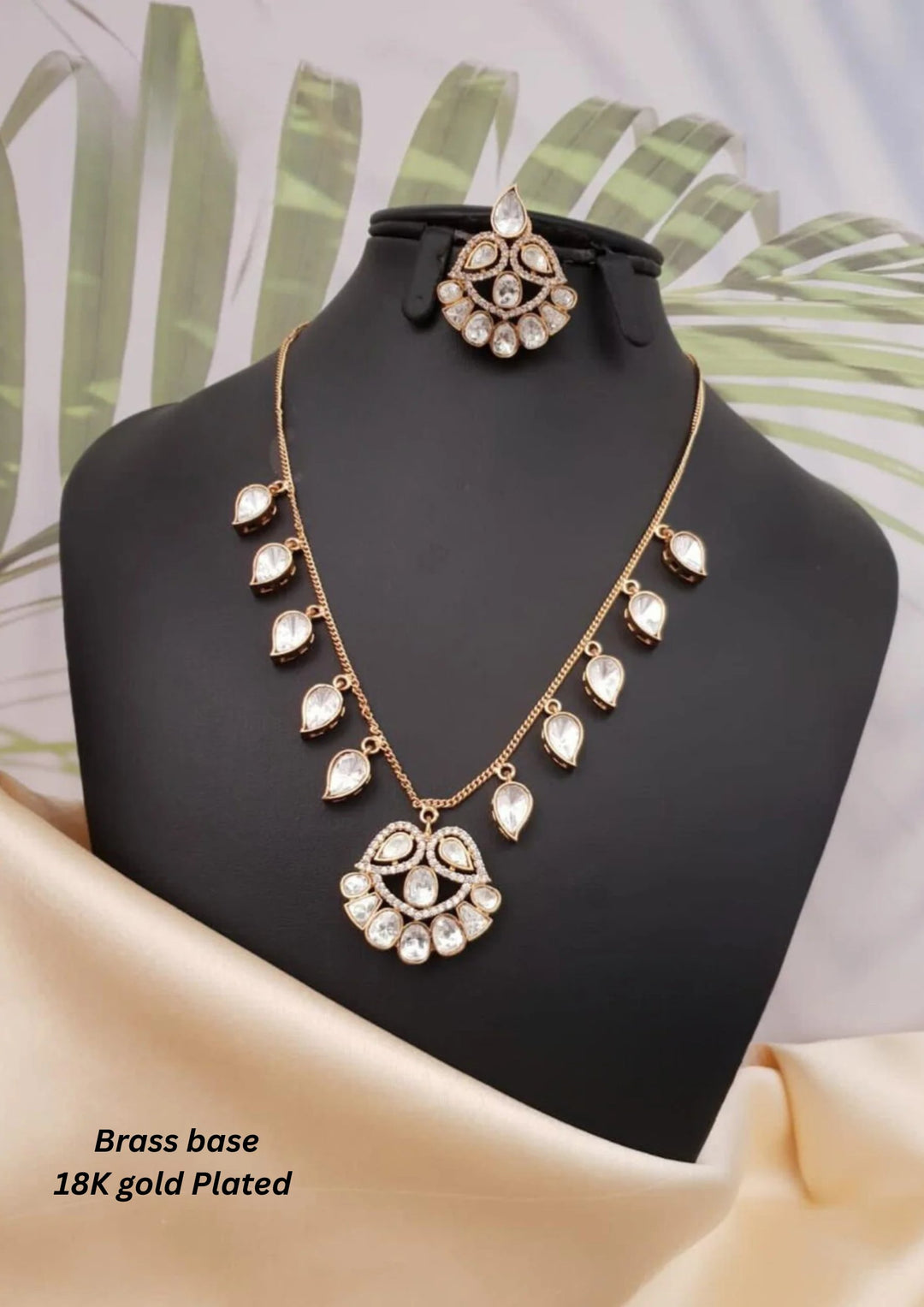Pure Zirconian Diamond Gold Plated Necklace With Earrings And Mangtikka g 102250