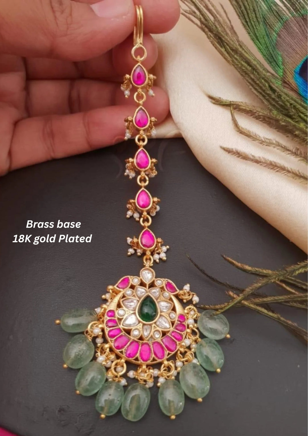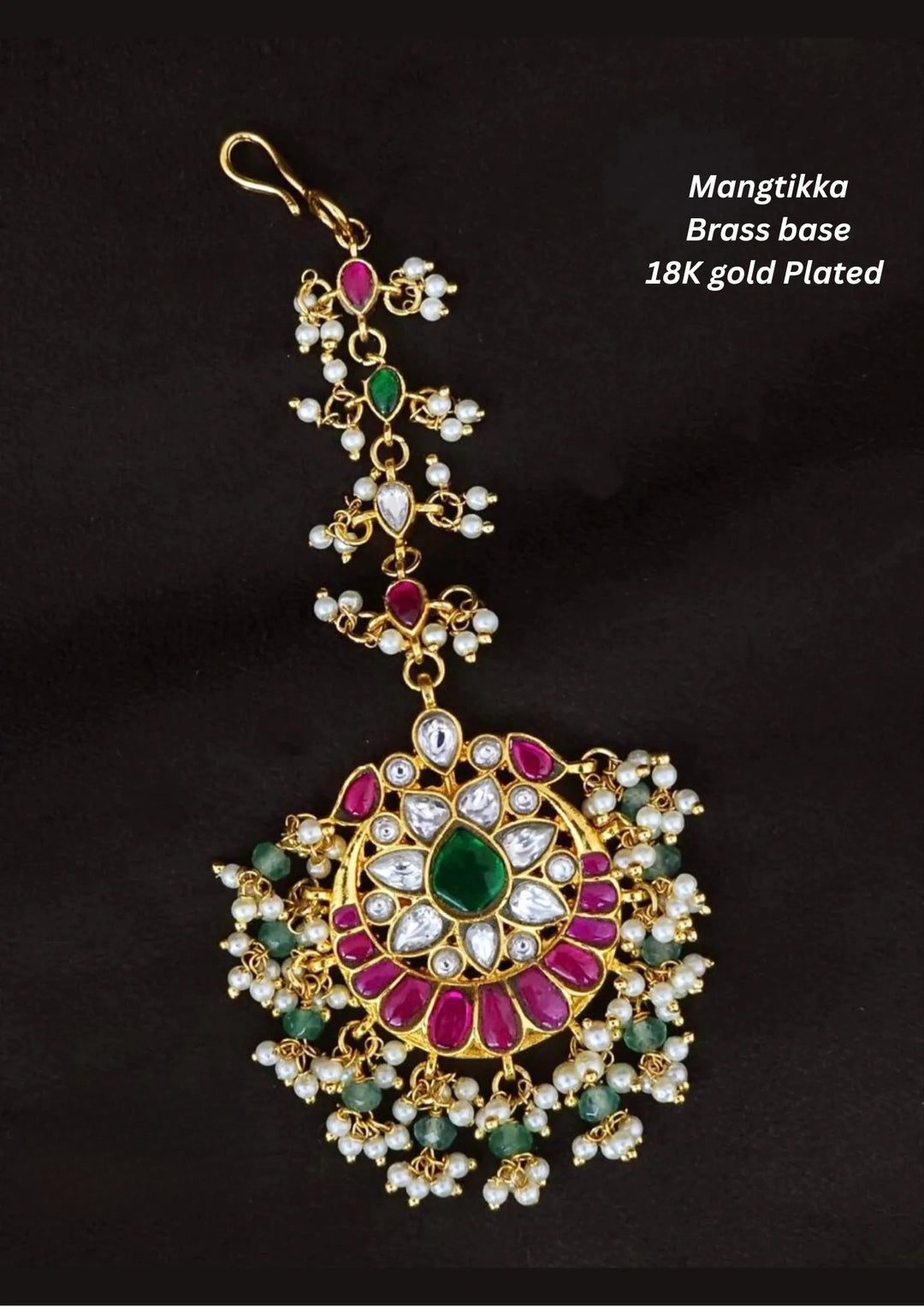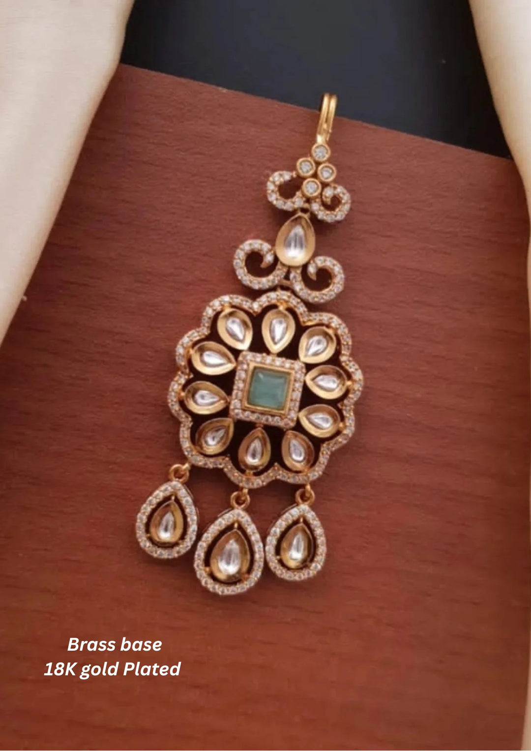 Jadau Kundan Brass Base Gold Plated Mangtikka r10950