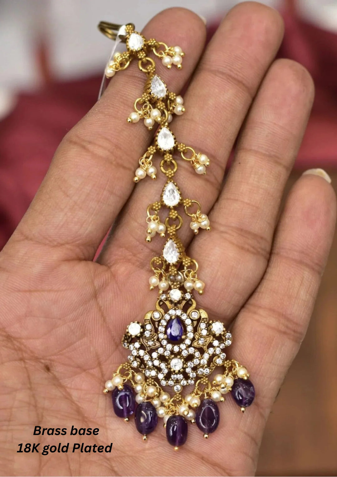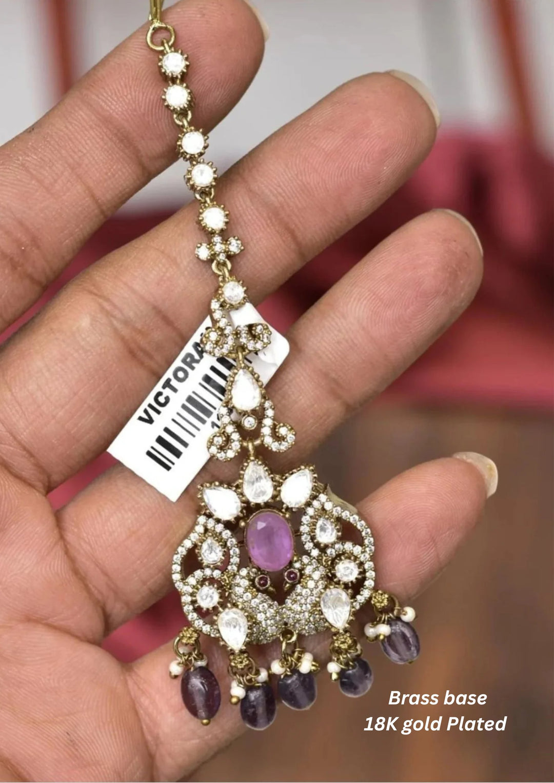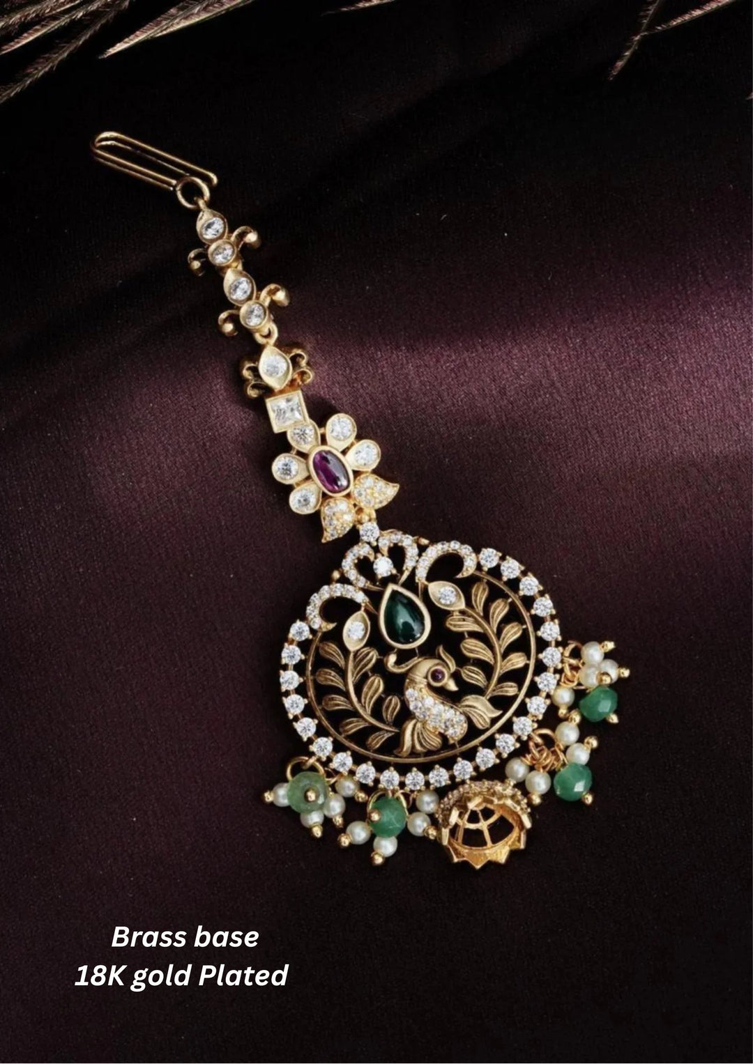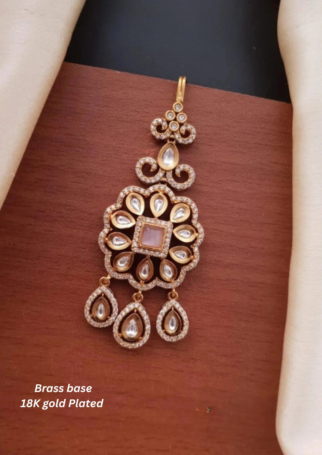 Jadau Kundan Brass Base Gold Plated Mangtikka r10950