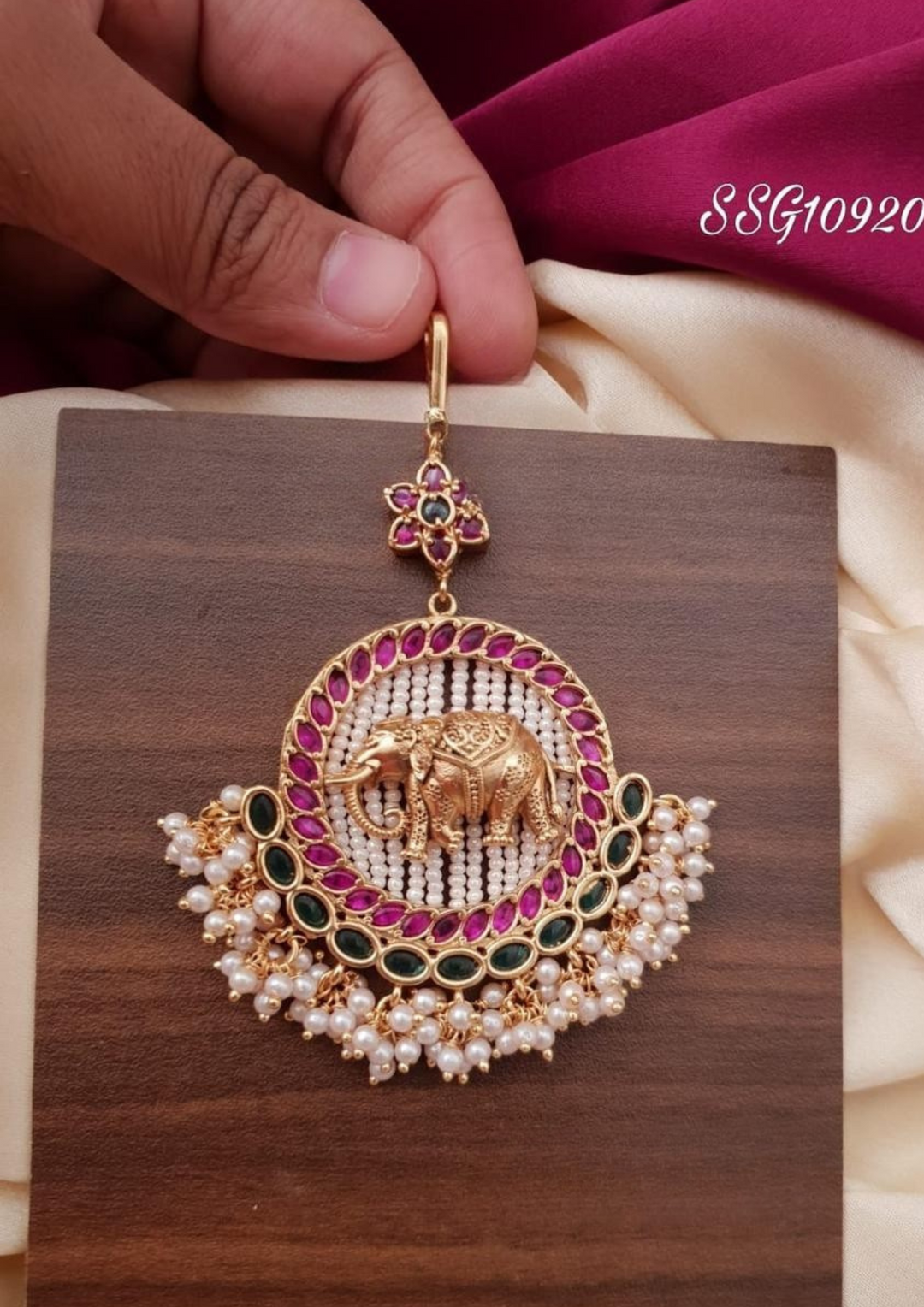 Kundan Brass Base Gold Plated Temple Mangtikka g10399