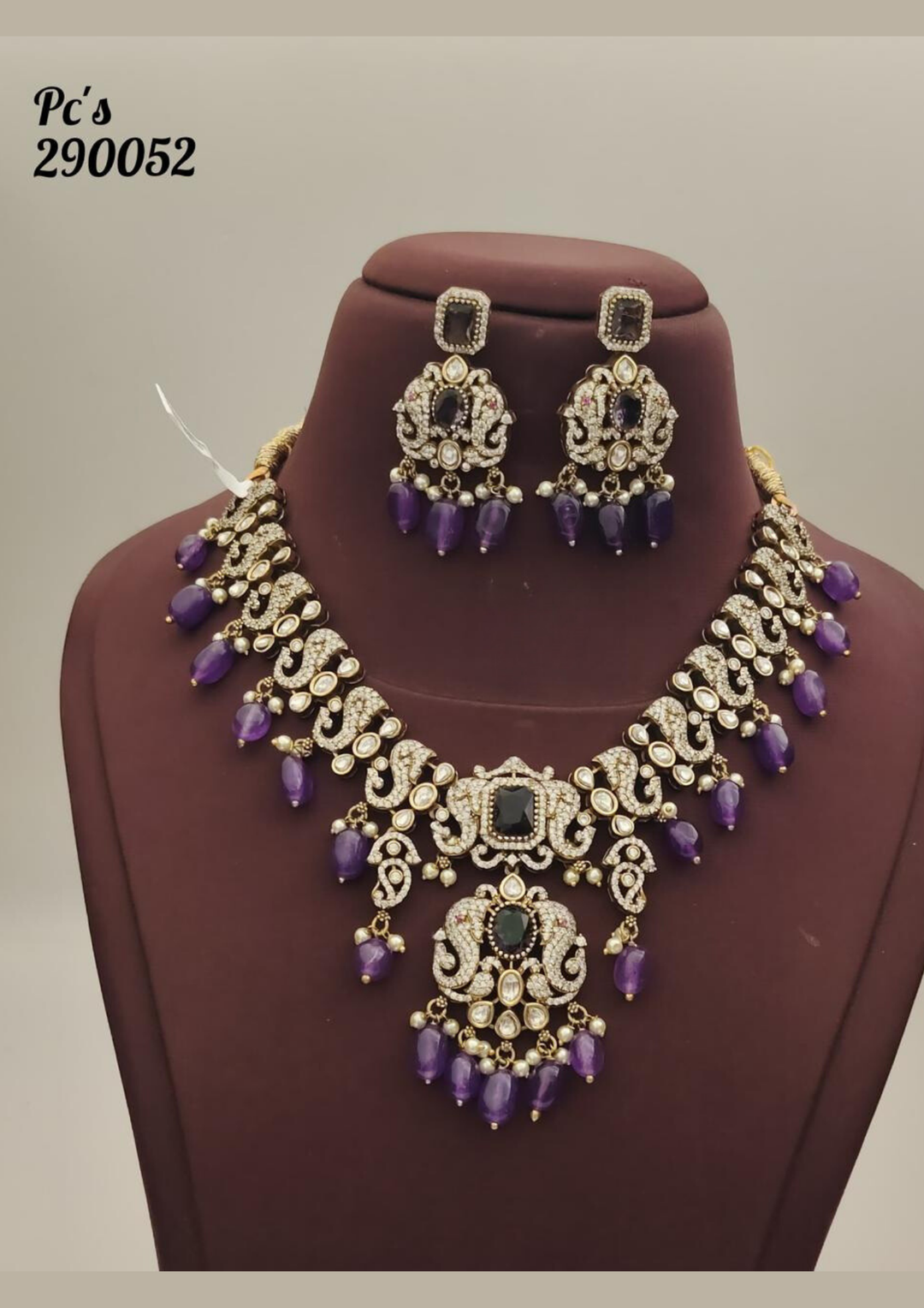 Victorian Brass Base Gold Plated Necklace With Earrings g 10899